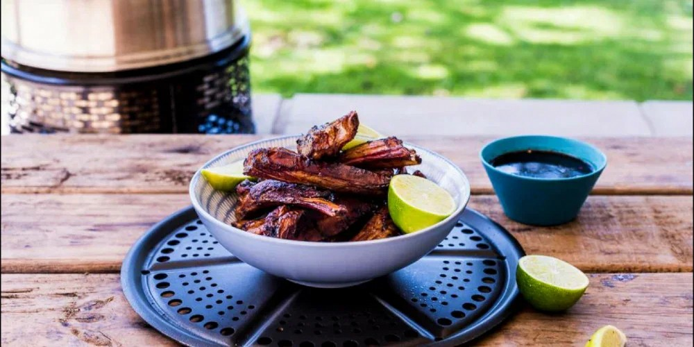 - When your ribs are sticky, caramelized, and tender, remove from the COBB and serve with fresh wedges of lime.